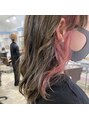 耳周りのみの、さりげないイヤリングカラー☆くすみピンクが可愛い♪