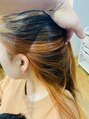 追いブリーチで3回抜いて流してオレンジとピンクを1対1で合わせて塗布しました。予想通りの色味が出ましたが今後の色落ちを考えると赤を足した方が良かったと思いました。ダメージを考えたらダブルカラーよりはイヤリングカラーぐらいの方がオススメです。