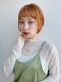 顎くらいの大人ショート、ミニボブ。オレンジベージュカラーで、透明感と柔らかい印象になれます。オイルバームを髪全体に馴染ませるだけのツヤ髪になれる簡単スタイリング。