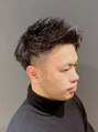 直毛さんならとっても楽にスタイリングできる髪型です。前髪を立ち上げ頭の形がキレイに見えるようデザインしました。ツーブロックで刈り上げの位置を調整しハチ張りや絶壁もカバーできます。ジャケパンやスーツにも相性が良く、ビジネスにもカジュアルにも◎