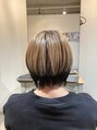 カットラインを残したモード系マッシュスタイル。カラーは表面をブリーチしたハイライトカラーです。