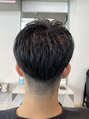 ヘムラインはツーブロックで刈り上げ襟足はグラデーションで自然につなげたショートスタイル、自然に束感がでるようにレイヤーを入れて毛量調整、ビジネスでもカジュアルでも。