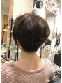 癖毛も楽チン♪ショートスタイル。映え癖や膨らみ・うねりのある癖も切り込む事でお手入れをし易くしてあります。 柔らかい明るいカラーで白髪ぼかし効果や、顔映り良く(^^)