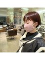 揃ったバングがオシャレなショートボブスタイル。チェリーブラウンをのせました。
