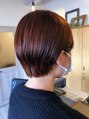耳掛けショートスタイルにブリーチなしのダブルカラーでオレンジブラウンでカラーしました!