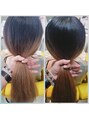 ブリーチをして髪が傷んでしまってバサバサ、手触りもザラザラしてしまった髪。元々癖毛でしたが以前より広がってしまい髪を下ろす事ができない状況髪の多いのも悩み