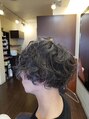 襟足のみツーブロックで、全体にハードパーマで仕上げています。