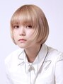 マッシュショートのブロンドベージュ。顔まわりに動きを加えたミニボブ!履歴にもよりますがブリーチ1~2回で可能です。