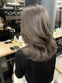 韓国女優のような透明感のあるくすみブルー、テラコッタ、グレージュカラーし、全体のカットは重めで切りながら顔まわりにレイヤーを入れて軽やかスタイル。毛先と顔まわりをデジタルパーマで簡単スタイリングに。インスタ 『@hideki.chiba』巻き方動画など