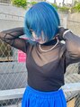 全体をブルーに染め、インナーに黒をオン◎逆インナーカラーで個性的におしゃれを楽しみましょう!ハイトーン、周りと被らないデザインカラーお任せください!お客様一人一人の髪の状態に合わせて薬剤を変えてダメージレスに仕上げます!