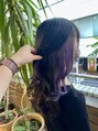 インナーカラーで垢抜けませんか?ダメージレスなケアブリーチを使用し、パープルカラーに仕上げました♪インナーカラーは全頭ブリーチしないのでカラー初心者さんにもオススメです!一気にお洒落になれるのでご相談ください!【インナーカラー/ピンク】