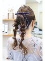 ポニーテールの編みおろしです。ロングだったので、ツインで編んで可愛くしてみました。フィッシュボーン、ツイスト、フィガーエイト、三つ編み、タマネギなどの組み合わせです