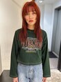 ストレートレイヤースタイル顔まわりのプツッとしたデザインでアクセント赤みかかったオレンジカラーでナチュラルなモード感