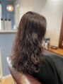 全体は明るくなり過ぎない様なブラウン系のカラーで落ち着いた雰囲気を出し、パーマで女性らしさを表現しました。