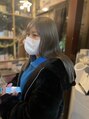ブリーチ2回でシルバーグレーカラー。トリートメントで極力髪を傷ませないようにしています。