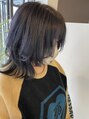 個性派うびれウルフスタイルカラーはミドルだけブリーチしてバイオレットに、他はブルーブラックで色味を合わせました。髪が動くたびにチラッと見えるのが最高に可愛い!!