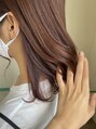 耳元にイヤリングカラーで【ヴァイオレットアッシュ】、全体は【チェリーピンク】で、色味の系統は合わせつつ、アクセントをつけたスタイルを☆毛先に動きが出るように、少しだけ毛量調整♪巻いても下ろしても大丈夫な2WAYスタイルです☆