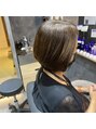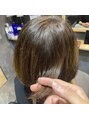明るめのボブスタイル。軽さとまとまりが出るように施しています。カラーも以前入れたハイライトを活かしてグレージュに!