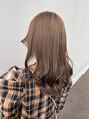 ブリーチ毛に入れた柔らかいベージュカラーです!少しオリーブの色味を入れているのでくすんで色抜けもギラギラするのを防いでくれます♪