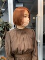 前上がりボブ!コンパクトなフォルムがキレイです。ブリーチ後オレンジをオン!少しベージュを効かせて秋冬っぽいオレンジが良い!