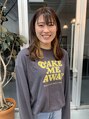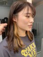ゆるっと巻いたミディアムヘア根元を外したイヤリングカラーでさりげなく深い色のオレンジブラウンにベージュのイヤリングカラーがアクセントになってます!