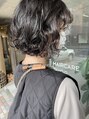 くせ毛を活かした強めパーマ。前髪もしっかりかけて個性的で可愛いヘアスタイルになりました。ボリュームが出過ぎないようにロッド選定や巻き方をしています。バームとオイルでしっかりスタイリングするのがオススメ。