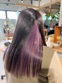 黒髪インナーカラー/パープル/イヤリングカラー/韓国/ブリーチ