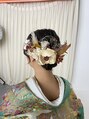 シンプルなシニヨンに、人気なドライフラワーをたくさん飾り、華やかなスタイルです!