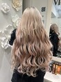 腰、へそまでの長さのシールエクステ☆長さ出しと一緒に、ホワイトピンクのハイライトも混ぜてつけています!