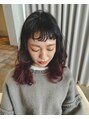 ニュアンス程度のウェーブに前髪も癖毛っぽくアレンジ。ニュアンスのアクセントに鮮やかなピンクバイオレットのカラーをオン。