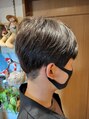 サイドと襟足をツーブロックにし、前髪からバックサイドに向かってマッシュルームボブにカットをしています。