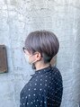 内側を刈り上げたすっきりショートスタイルです。カラーはブリーチしてからプラチナグレーで染めています。