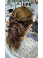 両サイドはツイスト編み、襟足は編み込みをしてポニーテール風にまとめた、ハーフアップです。