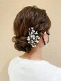 結婚式におすすめなアップスタイル。全体をウェーブ巻きしてカジュアルな印象にしつつ、お客様ご持参の髪飾りで華やかに仕上がりました☆どこから見ても可愛くなるようこだわって作ってます!