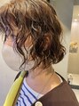 前髪パーマもかわいい、肩に付かない長さのボブパーマ。ボリュームが出過ぎない様に、上側にはパーマを掛けず、アイラインから下にウェーブをプラスしています。パーマをしっかりかけると、スタイリングの再現性もUPして朝も楽ちんです。