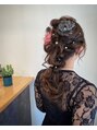 結婚式用ヘアセットです。カラーのあるところはエクステンションでお花を作ってます♪