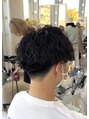 刈り上げマッシュスタイルに流行りの波巻きスパイラルパーマです。カットとパーマで骨格補正をしてシルエットの悩みを改善しながらカッコよく。スタイリングはバーム、ジェル、グリースがおすすめです!