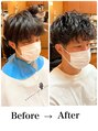 強めパーマで大変身!ビフォーアフタースタイルです!頭の形が綺麗に見えるよう常に意識をしています!パーマをかけることでより骨格補正、スタイリングも簡単!学生はもちろん、社会人の方にもオススメ!黒髪相性良し!絶壁、ハチ張り一緒に解消しましょう!