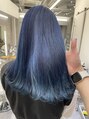 ケアブリーチでじっくり優しく明るくして透明感たっぷりのディープブルー☆イルミナカラーならではの深みのあるブルーがかわいい♪