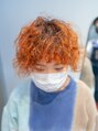 ブリーチ毛へ強めのカーリーヘア。北欧の少年の様なパーマは、意外と人気があります☆カラーは強めのオレンジでより北欧風に。★お客様のなりたいを可能な限り叶えます。髪のお悩みや、イメージ、何でもご相談下さい。★