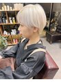 ショートスタイル。オンカラーなしのブリーチ抜きっぱなし。ケアブリーチ、ムラシャン仕上げ。ブリーチ二回~。ブリーチメニューはご相談(回数・ご予算など)あればお電話でご連絡ください。