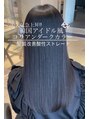 韓国アイドルのような透明感と艶感ありつつブルーが少し入ったブルーブラック!!硬さがない透明感あるダークカラーが大人気★髪質改善酸性ストレートパーマをプラスすることでサラ髪になってより韓国アイドル風に近づく♪