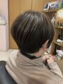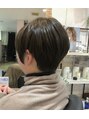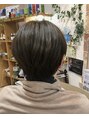 癖もあり重く見えやすいですが、耳上を切り込み軽やかさを。ショートは頭の形も綺麗に見えるのを大事にしてカット。レイヤーを入れて目線を上にし、カジュアル感を出してあります。色味は柔らかく見える、グリーン×ベージュで赤みを抑えて軽い雰囲気に(^^)