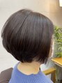 トップにボリュームを持たせてえりあしをスッキリさせる事で丸みを出して、シルエットが綺麗になるようにしました。カラーは透明感のあるブラウンで仕上げています。