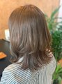 ツヤと透明感が出るイルミナオリーブベージュでナチュラルだけど雰囲気のあるヘアカラーに。ただ切りっぱなしではなく、指通り良く、重軽な質感を作っています。顔まわりの後れ毛、シースルーバングもポイント!