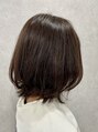 表面に少しレイヤーを入れてカット。動きが出やすいよう毛量調節をして、ヘアカラーは艶カラーモカブラウンベージュ。ボブ/マロン/栗色/大人可愛いボブ