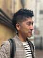 元々直毛でカット頻度の高いお客様でも、外国人の男性の様なくせ毛風ナチュラルパーマをあてる事で、手入れも楽に、伸びてもいい感じ。ナチュラルなのにちょっとのインパクトを。トップはスライドカット&ブラントカットのみでわざと毛先は直線的に。