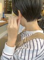 ボーイッシュに見えがちなショートですが、襟足の毛先を首にそわせるようにカットすることで女性らしい雰囲気がだせます◎