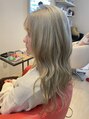 すでにブリーチをされていたので、ブリーチリタッチから、毛先は優しいブリーチを使い最低限のダメージで施術させていただきました。ブリーチ後の黄色味を消す調合でハイトーンを保ち、色を入れました。