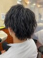前上がりベースでカットし襟足が毛先を軽くして抜け感が出るようにカットしてあります緩めのツイスパをON